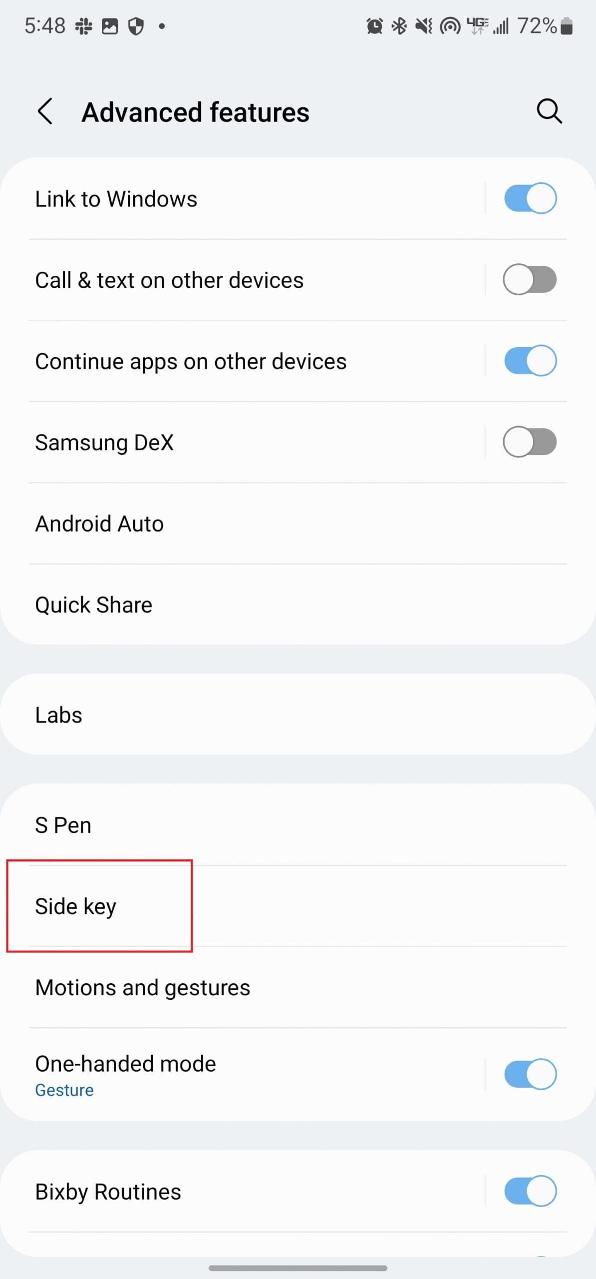 - Scroll down and tap Advanced features.