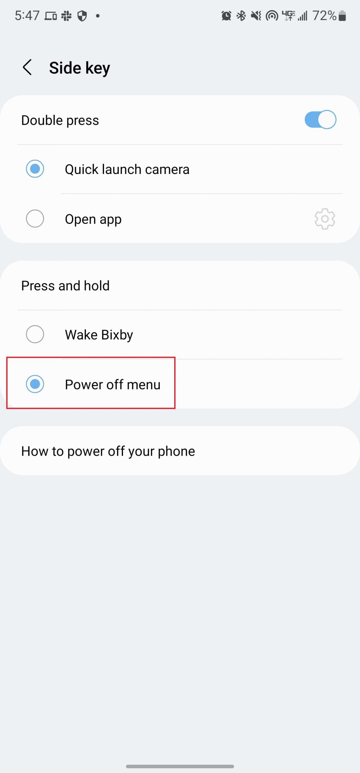 As we mentioned before, Samsung has changed how the Power button works on its devices. However, if you either enjoy using Bixby or just want to know all of the ways to turn off the smartphone, you’re in luck. There’s a way to turn off your new phone while still being able to press and hold the buttons on the side of the phone.